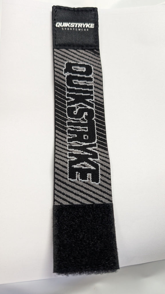QuickStryke branded sparring gear straps are to be attached to the gear and wrapped around in order to firmly hold gear to the body.